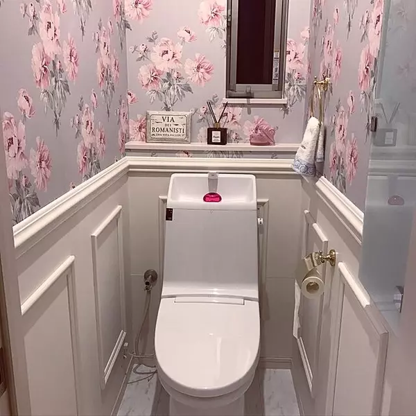 トイレのインテリア トイレの壁紙 シャンデリアライト ボタニカル柄 アクセントクロス などのインテリア実例 08 01 15 43 31 Roomclip ルームクリップ